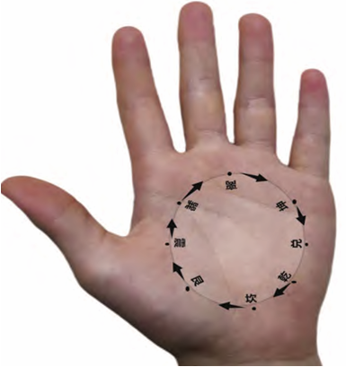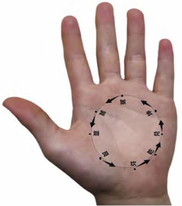 3.1 运内八卦 运八卦,也称运内八卦,即是以拇指罗纹面
